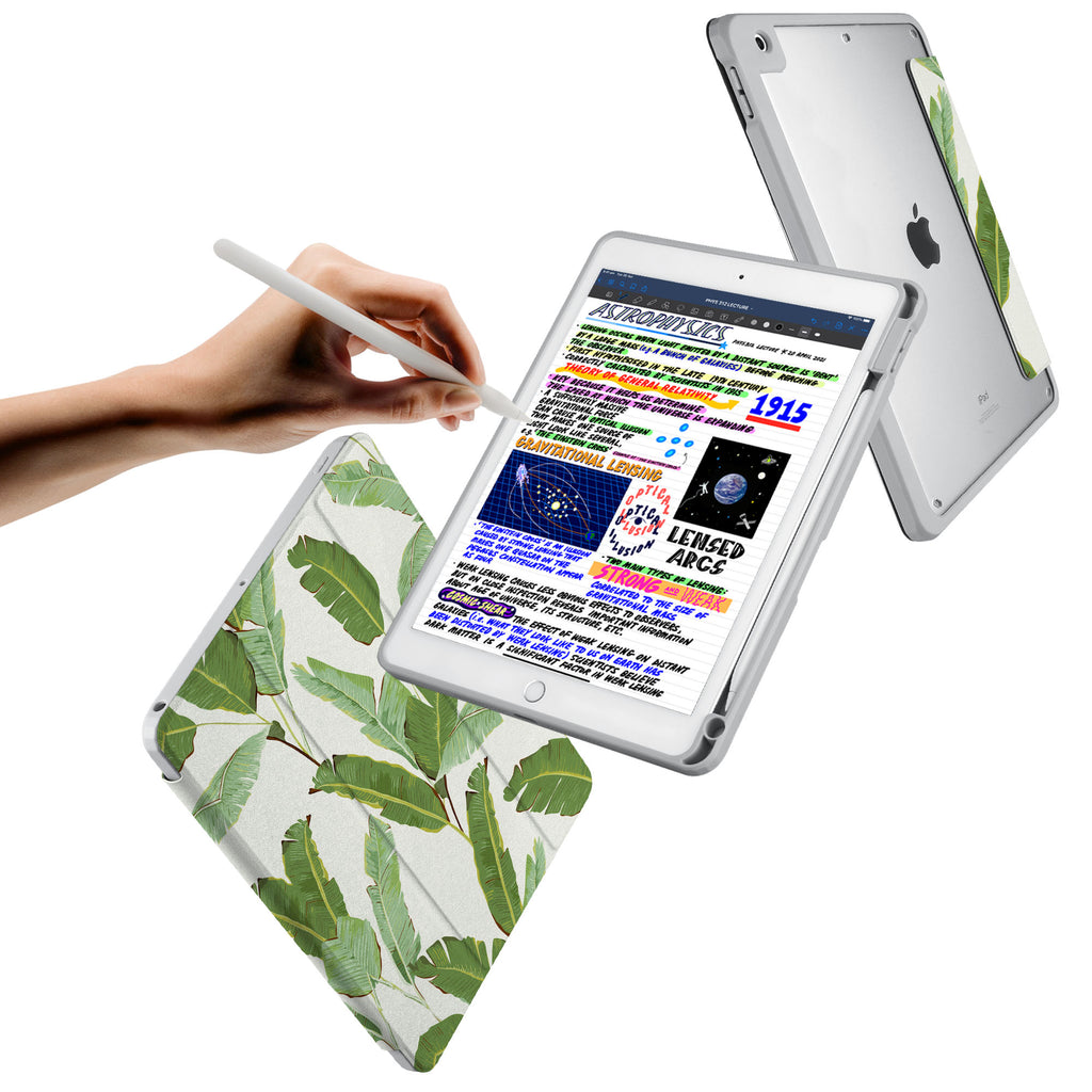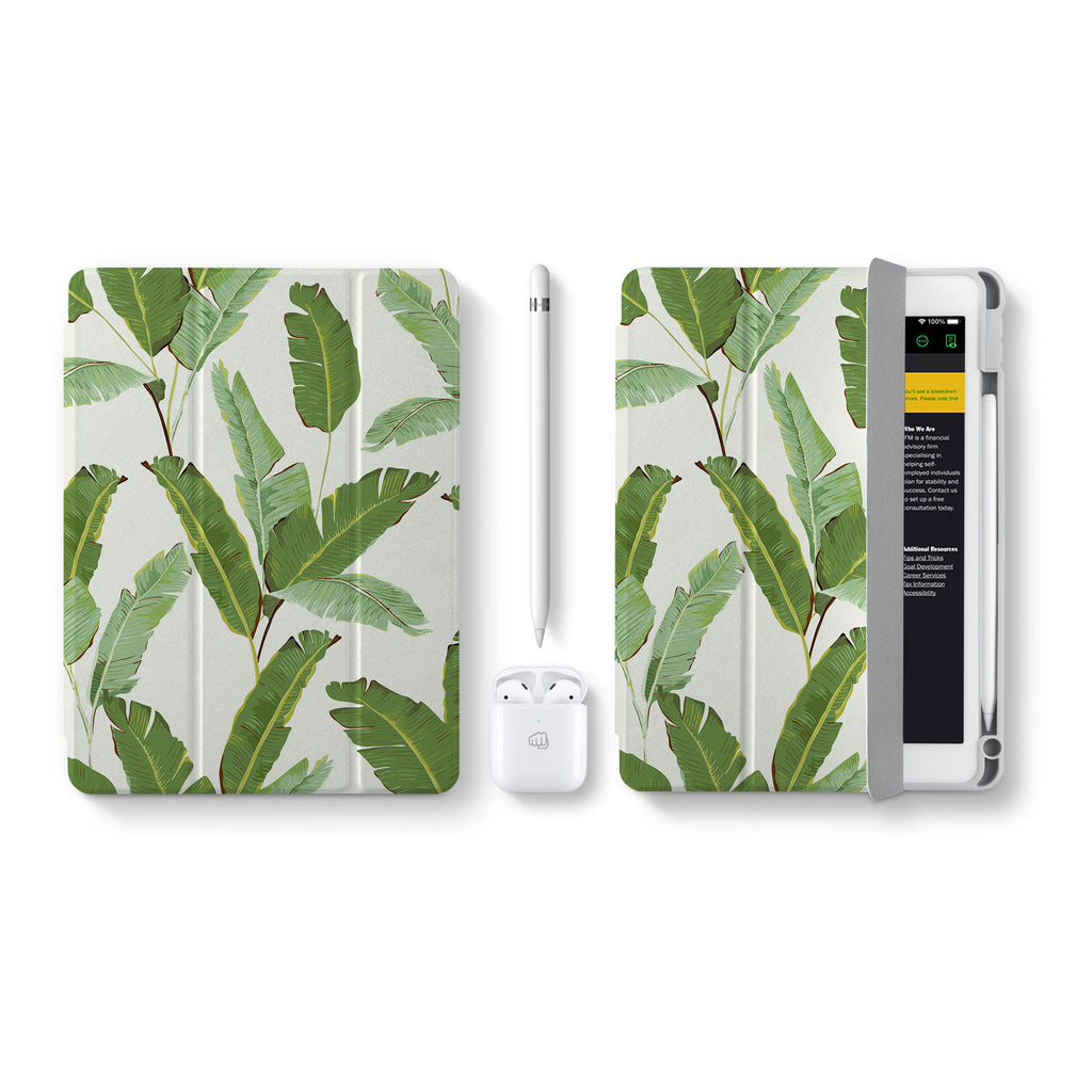 Vista Case iPad Premium Case with Green Leaves Design has an integrated holder for Apple Pencil so you never have to leave your extra tech behind. - swap