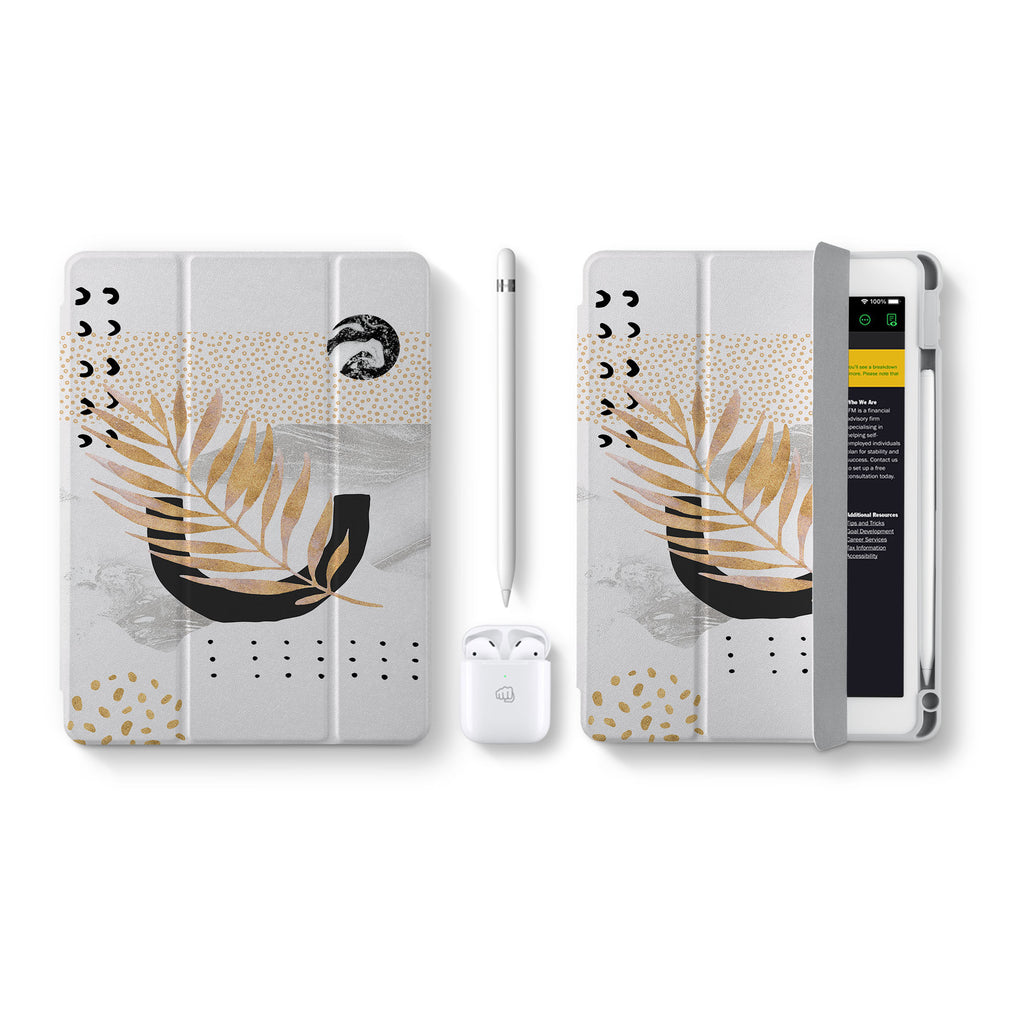 Vista Case iPad Premium Case with Marble Flower Design has an integrated holder for Apple Pencil so you never have to leave your extra tech behind. - swap