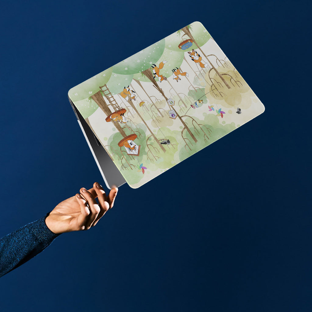 A yong girl holding personalized microsoft surface laptop case with Forst Animal design
