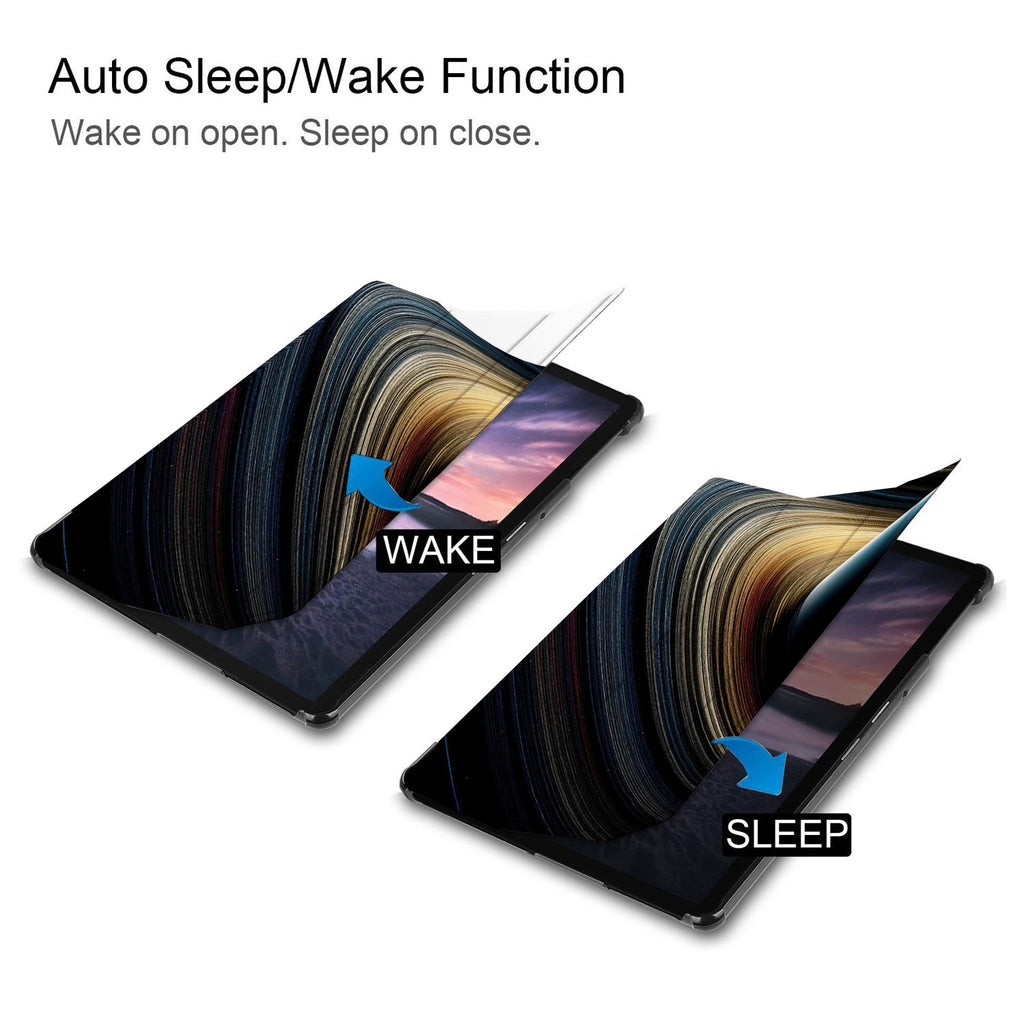 It automatically wakes your iPad when opened and sends it to sleep when closed with Universe design