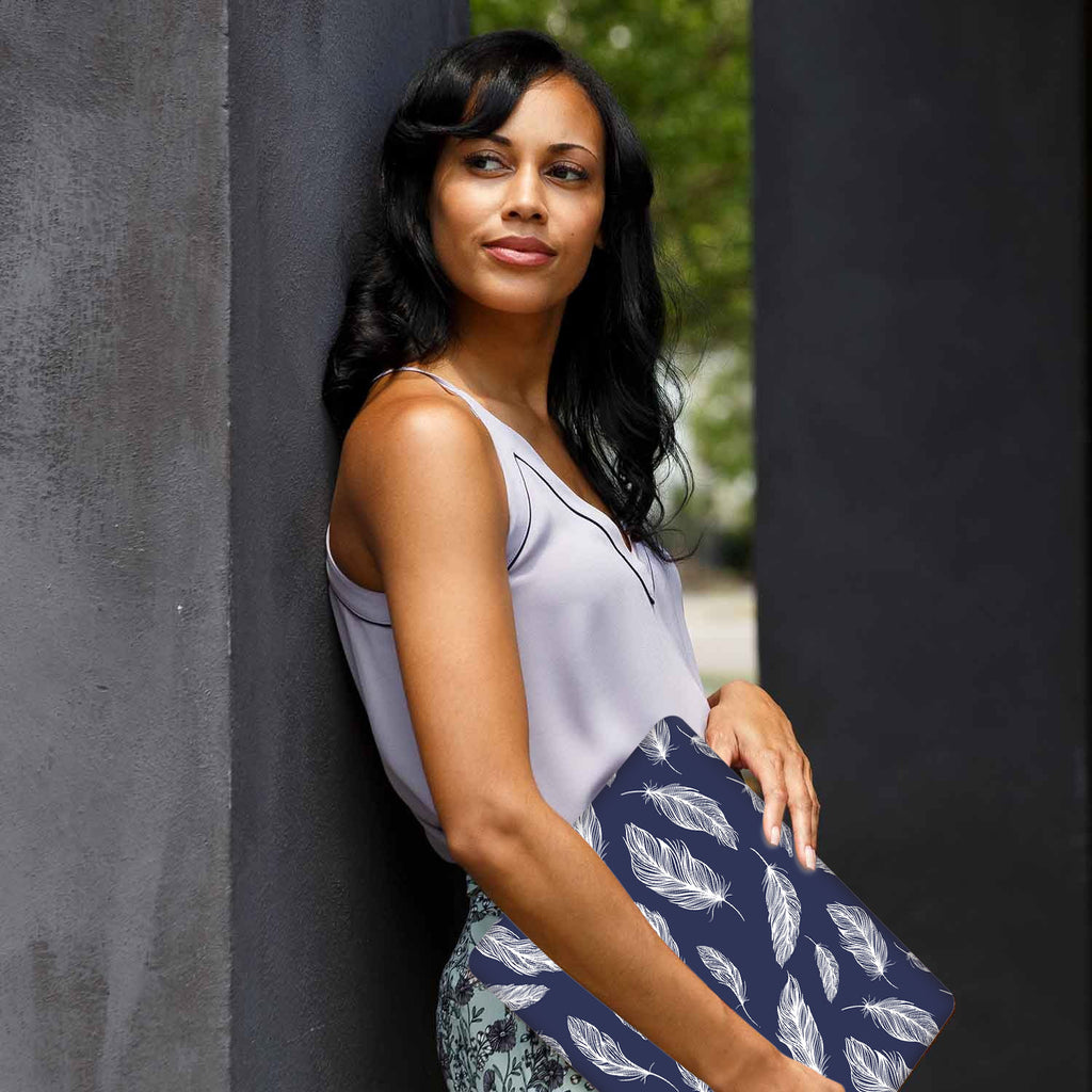 A yong girl holding personalized microsoft surface laptop case with Feather design